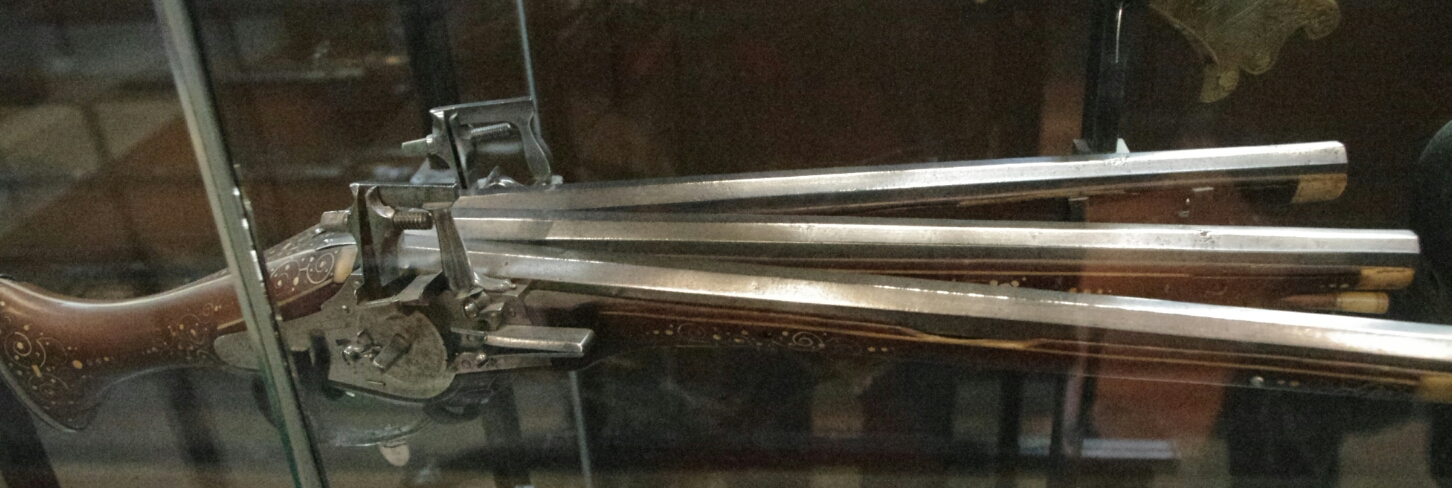 Miquelet gun made for King Phillip the fifth of Spain in 1715. This one had spare loaded chambers that one could insert and fire.