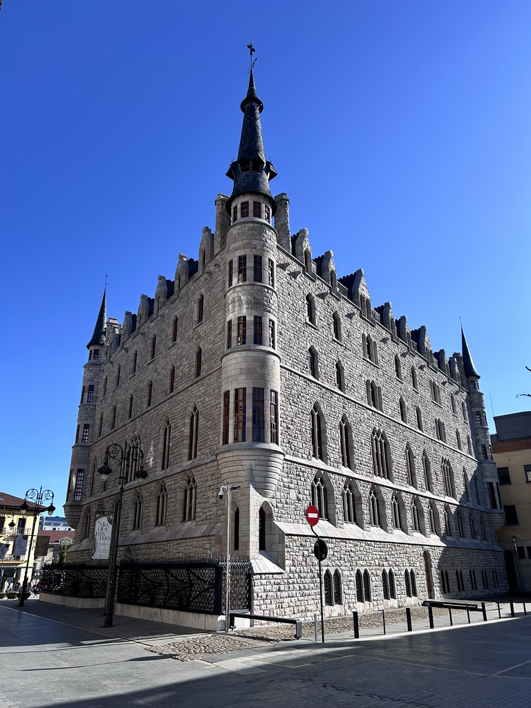 Rejoining my friends, we were on our way to the famed cathedral of Leon and stopped on the way to admire Gaudi’s early work of Casa Botines. Built in 1891-92 it is an example of Modernista architecture and built with a fabric warehouse in the basement, offices on the ground floor, owners residence on the first and second floors, rental accommodations for the third and fourth floors, with storage and caretakers home on the top floor. This style of urban residences influenced Gaudi for future projects and is one of only three buildings that Gaudi built outside of the Catalan region. In 1929 the building was bought by a bank and in 2017 it was converted to a museum. I like this structure and if I return I would very much like to visit the museum.