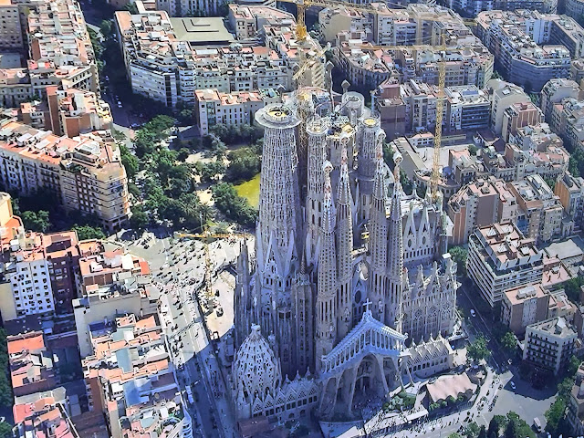 Note: The picture is an aerial photo in the basement museum of the Sagrada Familia.